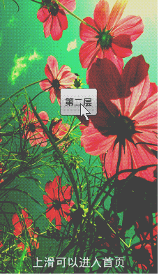 <com.manymore13.scrollerdemo.PullDoorView android:id="@+id/myImage" android:layout_width="match_parent" android:layout_height="match_parent" android:background="#ddd" > <Button android:id="@+id/btn_above" android:layout_width="wrap_content" android:layout_height="wrap_content" android:layout_centerInParent="true" android:text="第二層" /> <TextView android:id="@+id/tv_hint" android:layout_width="wrap_content" android:layout_height="wrap_content" android:layout_alignParentBottom="true" android:layout_centerHorizontal="true" android:layout_marginBottom="10dp" android:text="上滑可以進入首頁" android:textColor="#ffffffff" android:textSize="18sp" /> </com.manymore13.scrollerdemo.PullDoorView>