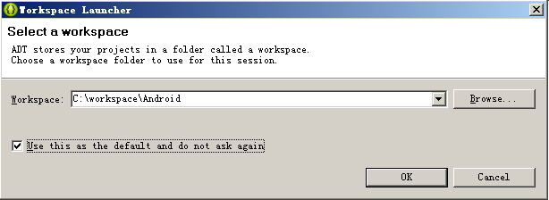 4、首次啟動要設置好工程目錄,以後你所有的Android工程都放在這裡。
