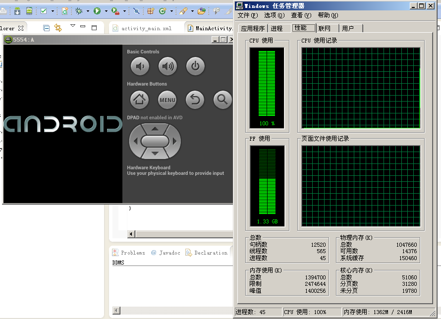 11、之後是最卡的一步——打開模擬器,開模擬器等於手機的開機。模擬器開了就別關了。Eclipse把程序編譯到模擬器上是一秒鐘的事,但開模擬器根據系統配置的不同,耗時可能10分鐘到15分鐘之久。如下圖,我的1G模擬器的所有系統資源。其實安卓工程的開發也不是很卡的,關鍵是開模擬器那些,開了之後就最小化,繼續開發,開發之後直接編譯就非常快樂。就是這樣的節奏!