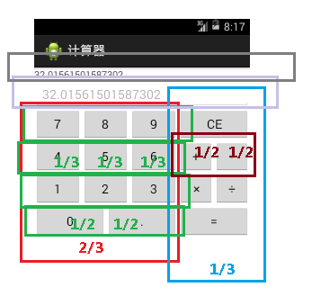 之後,布局部分采用了《【Android】關於百分比布局多個LinearLayout嵌套時出現的問題與解決方案》(點擊打開鏈接)的思想,具體如下圖,一個TextView、一個EditText,皆直接用match_parent占據整行的寬度,之後利用LinearLayout與TableLayout作橫向比例的劃分。