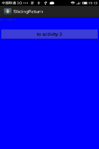 此圖為點擊第一個Activity跳轉到第二個Activity後,向右滑動再返回到第一個Activity。