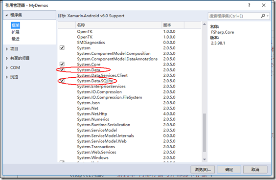 鼠標右擊【引用】à【添加引用】,在彈出的窗口中勾選“System.Data”和“System.Data.SQlite”,如下圖所示: