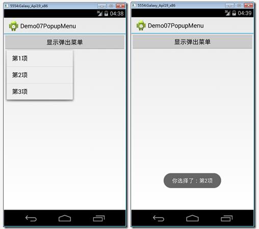 功能描述:用戶單擊按鈕彈出菜單。當用戶選擇一個菜單項,會觸發MenuItemClick事件並讓彈出的菜單消失;如果用戶在菜單外單擊,則直接消失彈出的菜單。當菜單消失時,會引發DismissEvent事件(利用此事件可在菜單消失時做一些後續處理)。