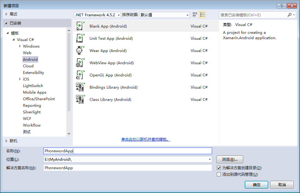 選擇模板:Blank App (Android),項目名:PhonewordApp。