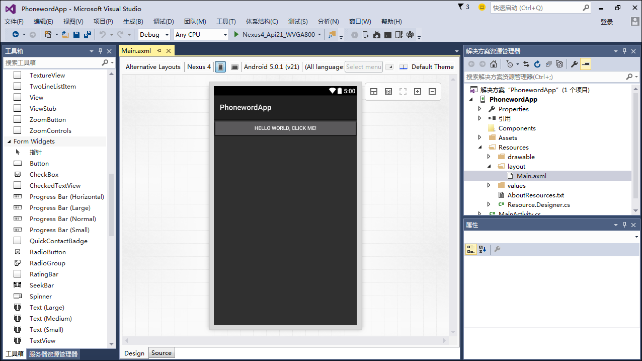到這裡,我們就完成了用C#編寫的第1個Android應用程序。