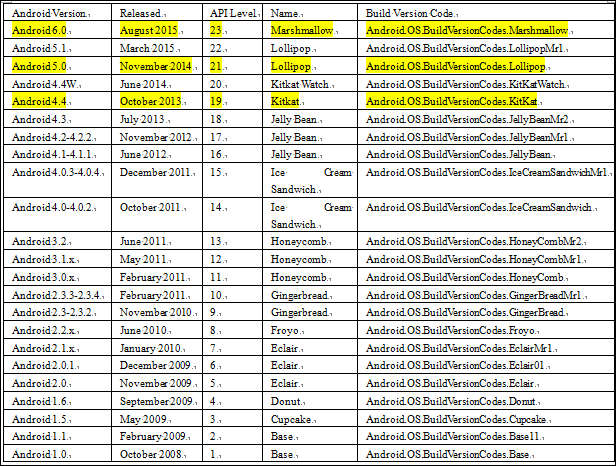 (注:Android.OS.BuildVersionCodes.Lollipop是指Android 5.0)