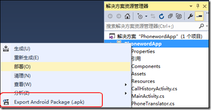 鼠標右擊項目名,然後選擇【Export Android Package】,如下圖所示: