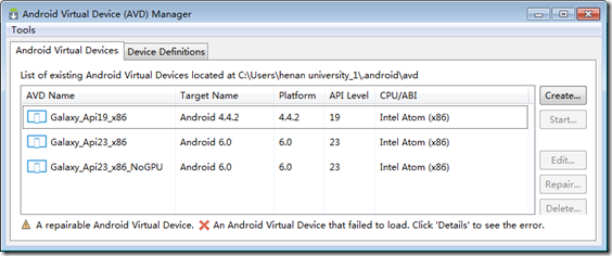 運行D:\Android\android-sdk下的AVD Manager.exe文件。