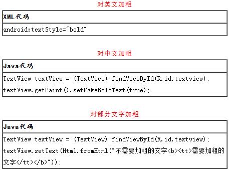 <TextView android:layout_width="fill_parent" android:layout_height="wrap_content" android:layout_margin="5dip" android:gravity="center" android:text="中文加粗了麼?Chiness is bolded ?" android:textColor="#000000" android:text android:textSize="18sp" />