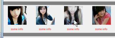 <LinearLayout xmlns:android="http://schemas.android.com/apk/res/android" xmlns:tools="http://schemas.android.com/tools" android:layout_width="match_parent" android:layout_height="match_parent" > <HorizontalScrollView android:layout_width="wrap_content" android:layout_height="150dp" android:layout_gravity="center_vertical" android:background="#AA444444" android:scrollbars="none" > <LinearLayout android:id="@+id/id_gallery" android:layout_width="wrap_content" android:layout_height="wrap_content" android:layout_gravity="center_vertical" android:orientation="horizontal" > </LinearLayout> </HorizontalScrollView> </LinearLayout>