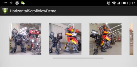 下面介紹一個HorizontalScrollView中包含許多圖片,並且可以滾動浏覽的示例