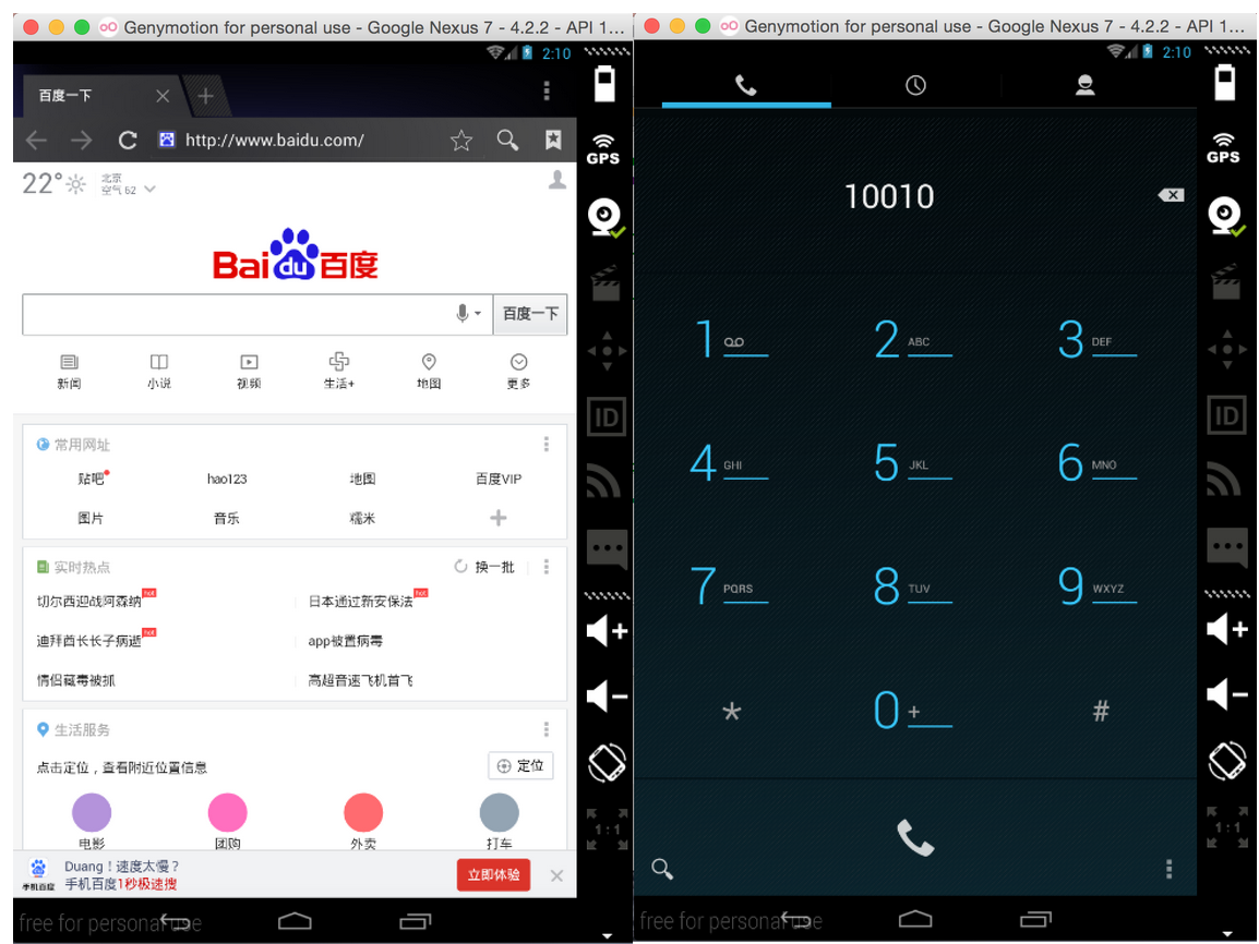 你可以以協議的方式打開系統的某些功能,比如打開系統的浏覽器,系統的撥號鍵盤等。在iOS也是這樣,不過是通過Application對象打開某些協議如tel://撥號協議等來調用系統功能。在安卓系統中也可以通過Intent對象來做這些操作。