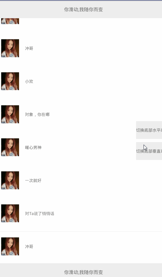 view滾動的幫助類實現完了,我們就寫個Recyclerview來簡單的測試下,MainActivity代碼如下: