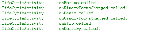 最後onDestory方法被調用,標志著LifeCycleActivity的終結。