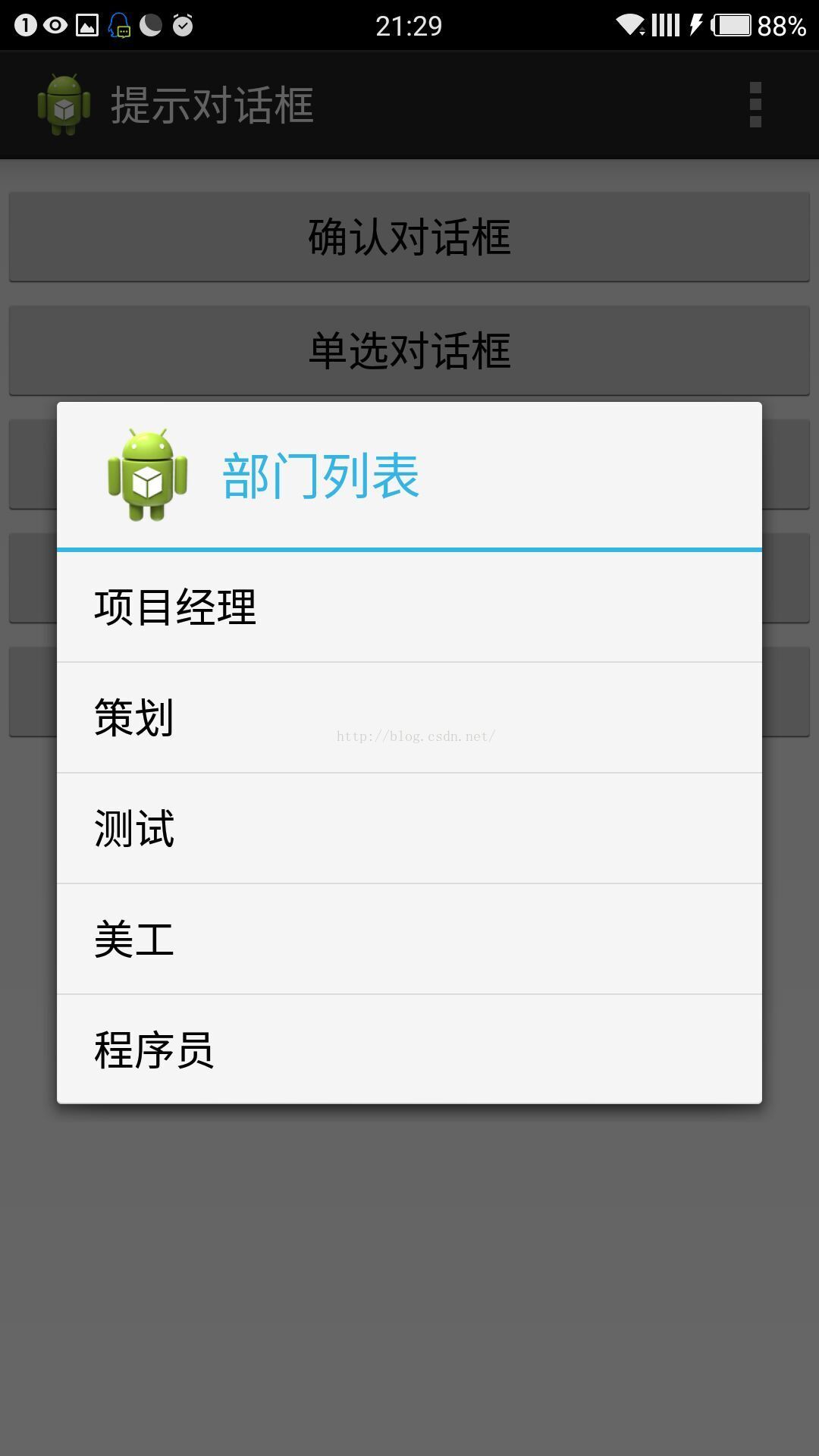 builder.setTitle("部門列表");//設置標題