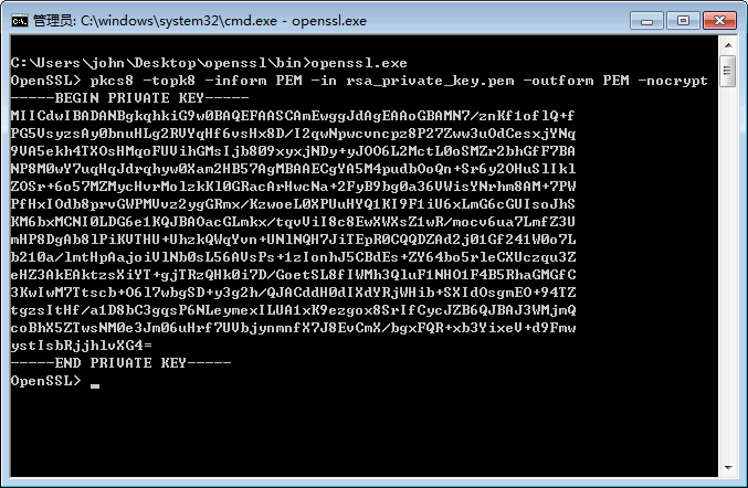 openssl>pkcs8 -topk8 -inform PEM -in rsa_private_key.pem -outform PEM -nocrypt