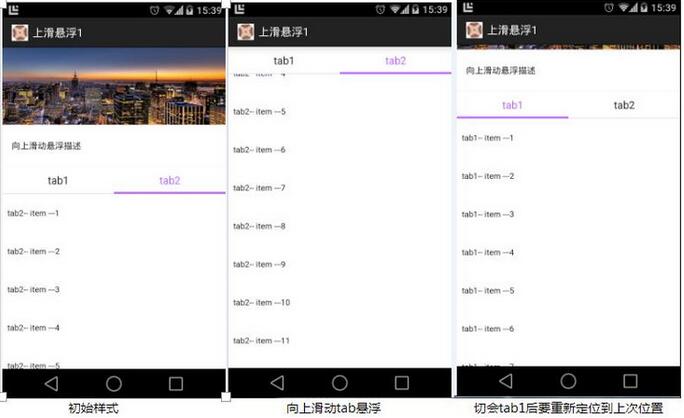 a 上面的demo只是實現了向上滑動的效果,其實有很大的局限性,兩個tab的item布局要一致,才能自由切換,其次是兩個tab不能左右滑動