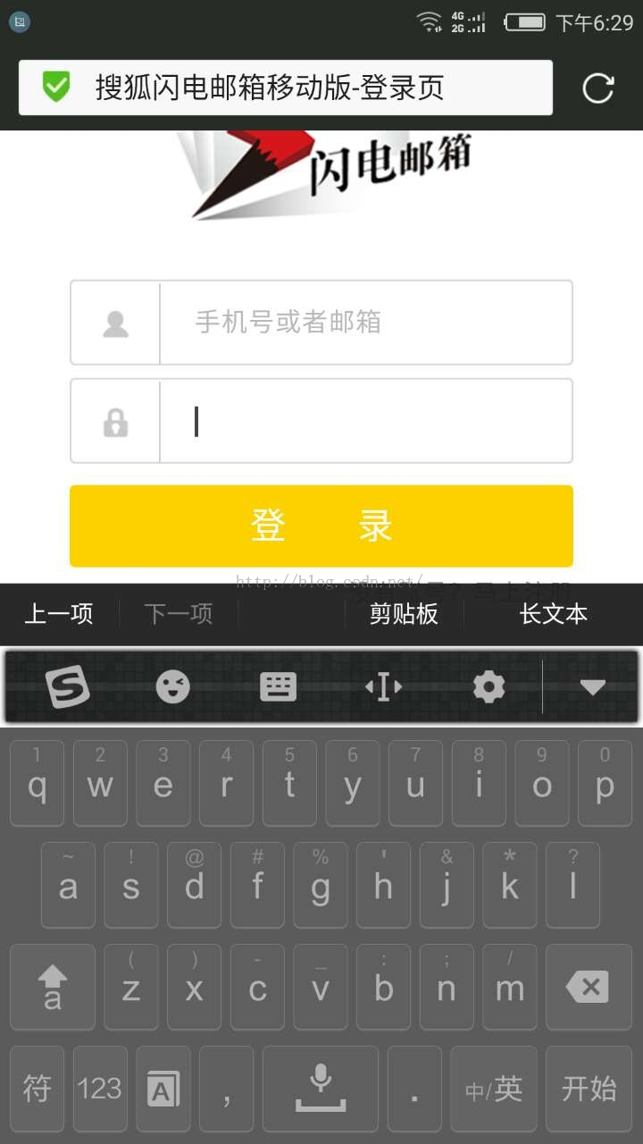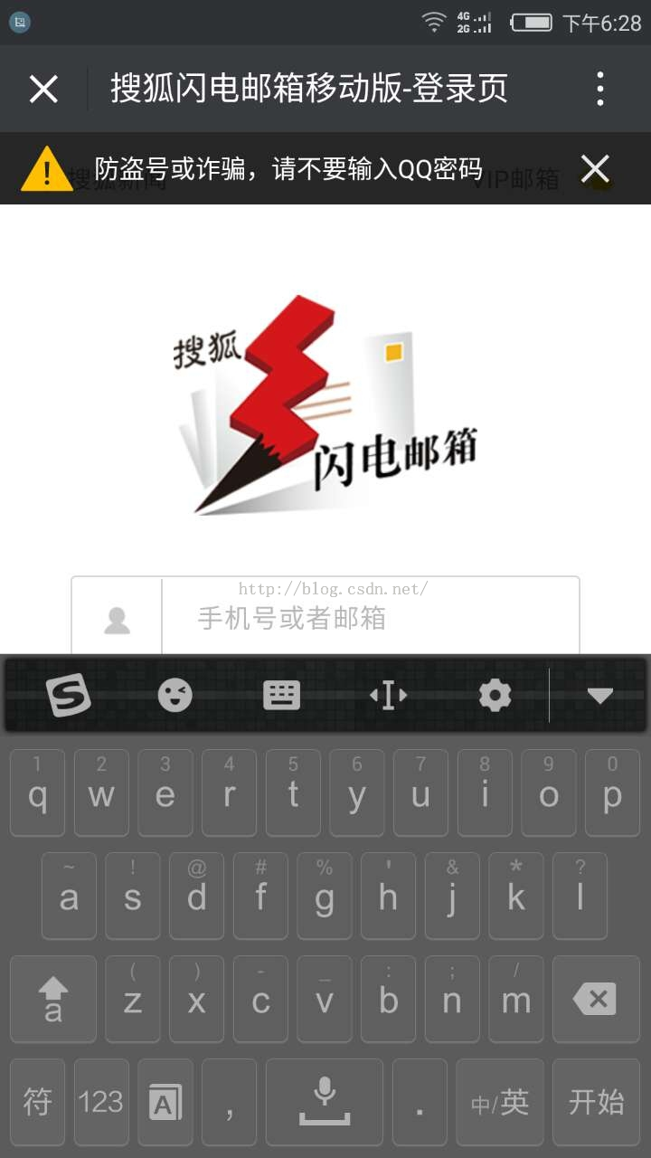 我就想這個虛擬鍵盤擋住輸入框的問題應該到處可見啊,各種注冊頁面估計都有,那怎麼會這麼多年來都用安卓的我竟然沒覺得這是個問題!?於是我跑去隨便找一個注冊頁面(如搜狐郵箱)http://wap.mail.sohu.com/,截圖如下:
