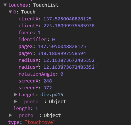 所以可以通過上圖這些屬性去獲取touch時的位置。