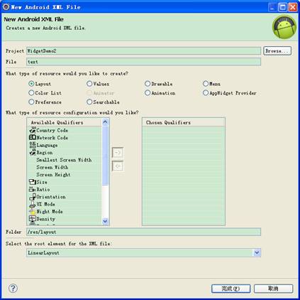 在rec/layout文件夾裡創建布局xml頁面 new->others->android->android xml file