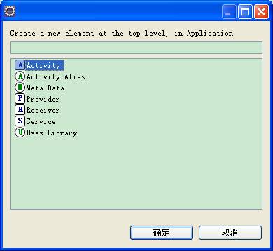 <activity android:name=".新Activity的名字" android:label="新Activity的標題"> </activity>