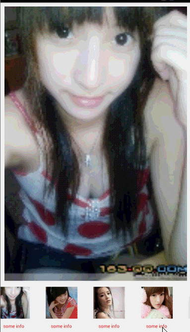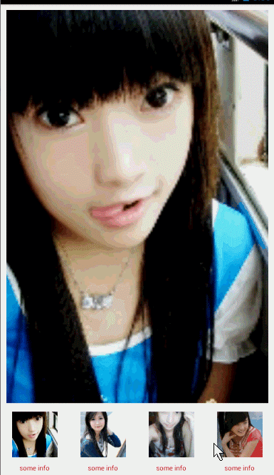 效果還是不錯的,接下來我想改成相冊效果,即上面顯示一張大圖,下面的RecyclerView做為圖片切換的指示器。
