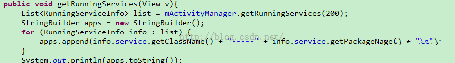 ③getRunningServices()獲取系統運行中的後台service。