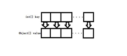 SparseArray是單純數組的結合.被稱為稀疏數組,對數據保存的時候,不會有額外的開銷.結構如下: