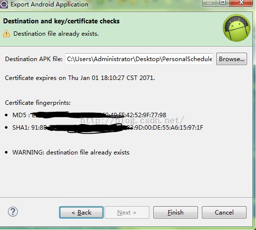 輸入<android.keystore>的主密碼(如果和 keystore 密碼相同,按回車): (博主我按了回車)