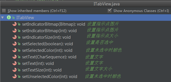 通過需求分析,我們可以定義如下的Tab子View操作接口: