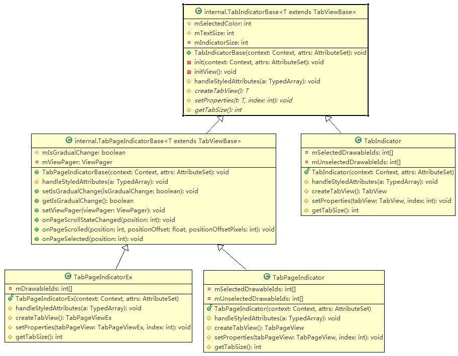 /** * 生成TabView * @return */ protected abstract T createTabView(); /** * 設置特殊屬性 * @param t */ protected abstract void setProperties(T t, int index);