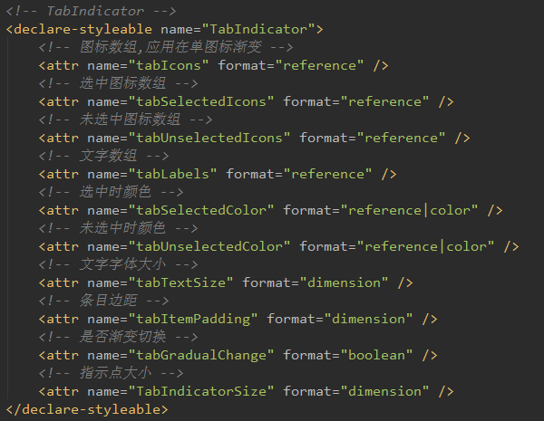 TypedArray a = context.obtainStyledAttributes(attrs, R.styleable.TabIndicator);