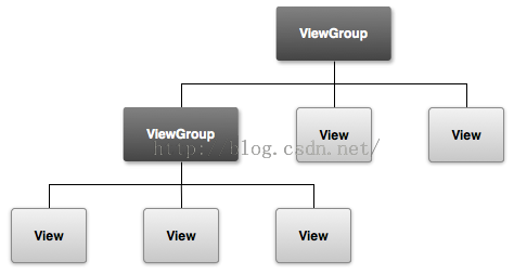 從實際應用中看,他們又是組合關系,我們在布局中,常常是一個ViewGroup嵌套多個ViewGroup或View,而被嵌套的ViewGroup又會嵌套多個ViewGroup或View