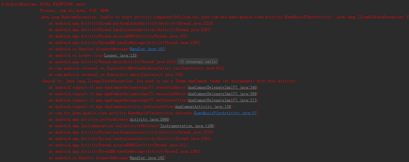 #1、錯誤描述今天,想實現Activity不顯示標題欄的效果,在項目的A