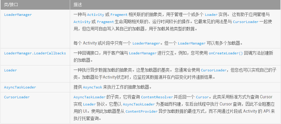 Loader(加載器)簡介Android 3.0 中引入了加載器,支持輕松在 Activity 或Fragment中異步加載數據。 加載器具有以下特征:(1)可用於每個