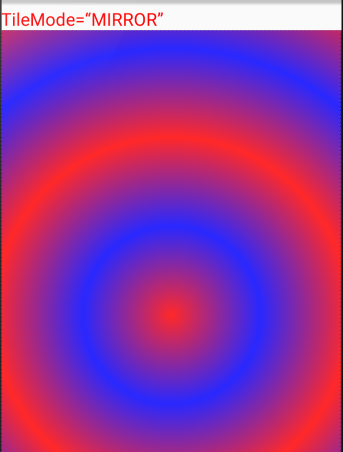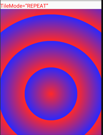 RadialGradient rg = new RadialGradient(canvas.getWidth()/2, canvas.getHeight()/2, 200, 0xffff0000, 0xff0000ff, Shader.TileMode.[CLAMP|REPEAT |MIRROR]);
