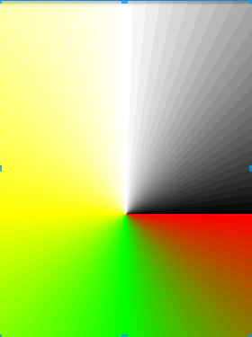 /** * * @param cx 中心X坐標 * @param cy 中心Y坐標 * @param color0 開始顏色 * @param color1 結束顏色 */ public SweepGradient(float cx, float cy, int color0, int color1)