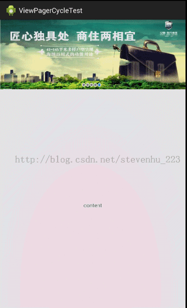前言:經常會看到有一些app的banner界面可以實現循環播放多個廣告圖片和手動滑動循環。本以為單純的ViewPager就可以實現這些功能。但是蛋疼的事情來了,ViewPager並不支持循環翻頁。所以要實現循環還得需要自己去動手。自己在網上也找了些例子,本博文的Demo是結合自己找到的一些相關例子的基礎上去改造,也希望對讀者有用。