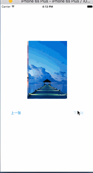 [self addAnimateWithPoint:CGPointMake(90, -20) angle:0.15 fromZ:1 toZ:-1 view:self.currentImageView];