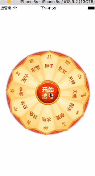 12個星座,那麼需要12個button。在擺放它們的時候,我是將一個個button的anchorPoint設置為(0.5, 1),將button的position設置為中心圓的圓心,然後設置transform來旋轉它們,是的達到圍繞一個圓擺放的目的。