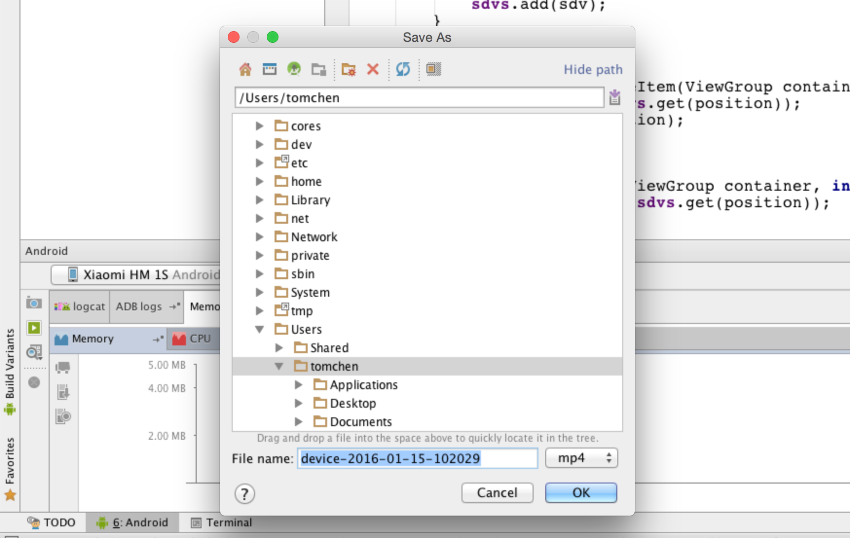 Android studio 自帶錄制功能
