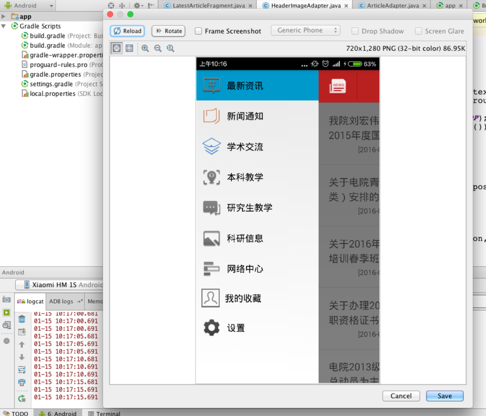 點擊截屏會彈出手機當前的操作界面,還可以用Reload刷新手機界面。
