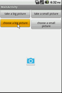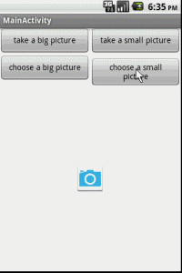 private static final String IMAGE_FILE_LOCATION = "file:///sdcard/temp.jpg";//temp file Uri imageUri = Uri.parse(IMAGE_FILE_LOCATION);//The Uri to store the big bitmap