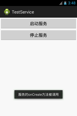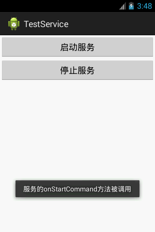 並且,此時你多次點擊"啟動服務"按鈕,只會彈出上方右圖,而不再彈出上方左圖。因為僅僅在服務創建的時候會調用onCreate方法,但當服務啟動的時候每次都會調用onStartCommand方法。