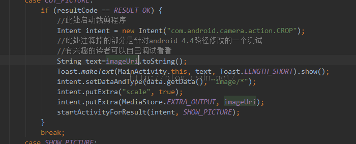 然後是用該圖片的絕對路徑作為Toast輸出:
