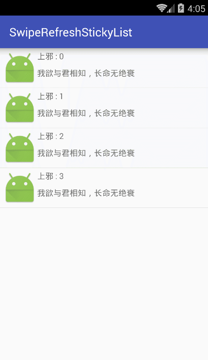 注: SwipeRefreshLayout主要是為了給該列表增加下拉刷新功能!