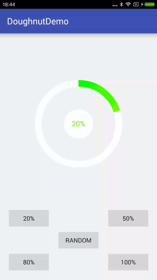//畫背景白色圓環 initPaint(); float doughnutWidth = Math.min(width, height) / 2 * 0.15f; paint.setStrokeWidth(doughnutWidth); paint.setStyle(Paint.Style.STROKE); paint.setColor(Color.WHITE); paint.setAntiAlias(true); RectF rectF = new RectF((width > height ? Math.abs(width - height) / 2 : 0) + doughnutWidth / 2, (height > width ? Math.abs(height - width) / 2 : 0) + doughnutWidth / 2, width - (width > height ? Math.abs(width - height) / 2 : 0) - doughnutWidth / 2, height - (height > width ? Math.abs(height - width) / 2 : 0) - doughnutWidth / 2); canvas.drawArc(rectF, 0, 360, false, paint);