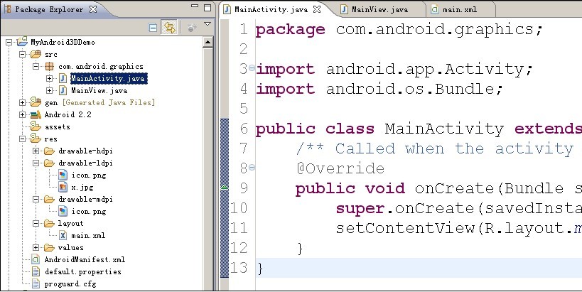 <?xml version="1.0" encoding="utf-8"?> <LinearLayout xmlns:android="http://schemas.android.com/apk/res/android" android:orientation="vertical" android:layout_width="fill_parent" android:layout_height="fill_parent" > <com.android.graphics.MainView android:id="@+id/cv" android:layout_width="fill_parent" android:layout_height="wrap_content" /> </LinearLayout>