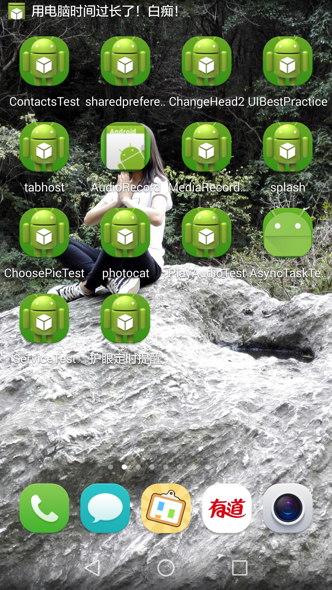 Notification notification=new Notification(R.drawable.ic_launcher,"用電腦時間過長了!白癡!"