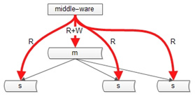 如果某一個key有寫操作,在不一致時間窗口內,中間件會將這個key的讀操作也路由到主庫上。這個方案的缺點是,數據庫中間件的門檻較高(百度,騰訊,阿裡,360等一些公司有)。